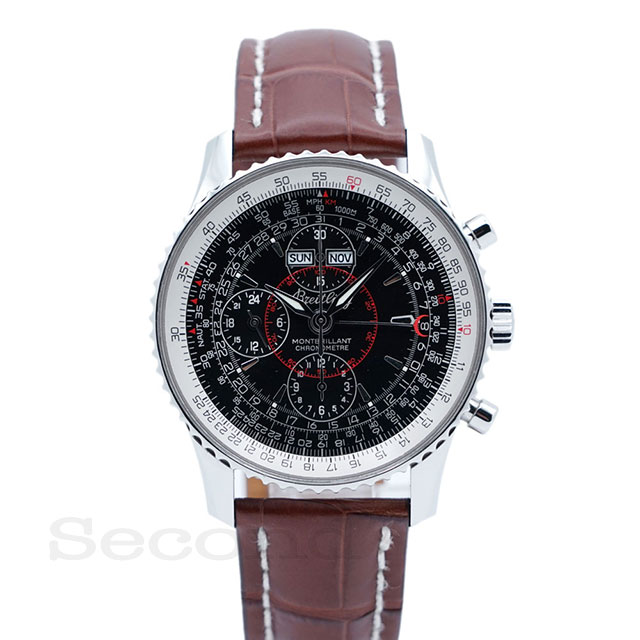 ブラックダイヤルに反転カラーのインダイヤルが映える、男らしい印象のクロノグラフ式自動巻腕時計!