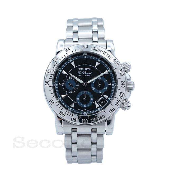 鏡面仕上げのステンレスケースに深いブルーダイヤルが爽やかな印象のクロノグラフ式自動巻腕時計!