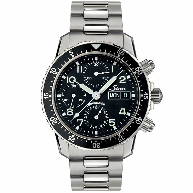 ブラックのクロノグラフダイヤルとタキメーターベゼルがシックな雰囲気の自動巻腕時計!