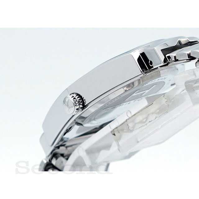 ケースに合わせた銀色のドルフィン針やドットのインデックスも統一感のある外観です。