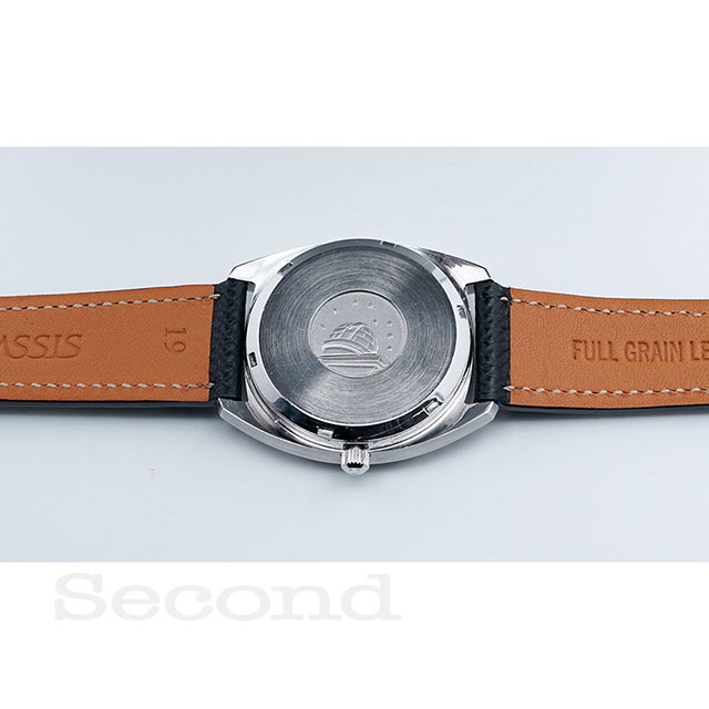 ブラックのラインが入ったニードルポイントにバーインデックス、アップライトのロゴはクラシカルなディテールです。