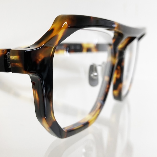 フロントはワイドでゆったりめのサイズ感、そしてややカーブが効いたデザインですので、眼鏡での使用はもちろん、カラーレンズとの相性も良く、サングラスとしての活躍も期待できます。