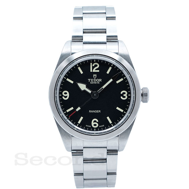 面取りされたシャープなステンレスケースにマットなブラックダイヤルが力強い印象の自動巻腕時計!