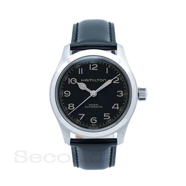シンプルで癖のないステンレスケースと黒文字盤との組み合わせがクールな印象の自動巻腕時計!