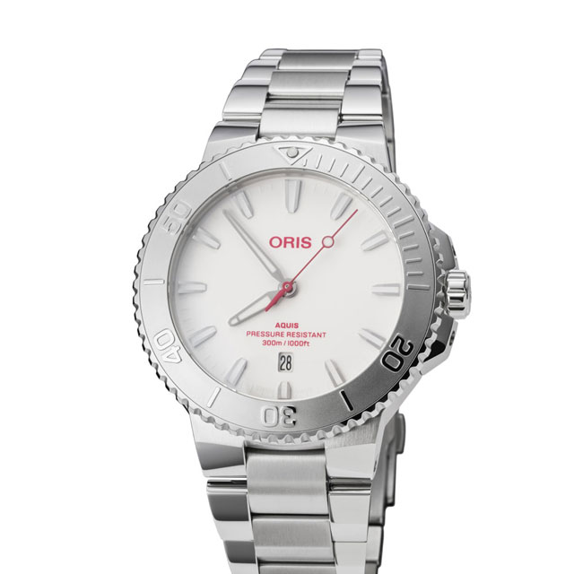 オリスのベストセラー「アクイス デイト レリーフ」をベースに、上品なホワイトは純粋さと洗練さを象徴!