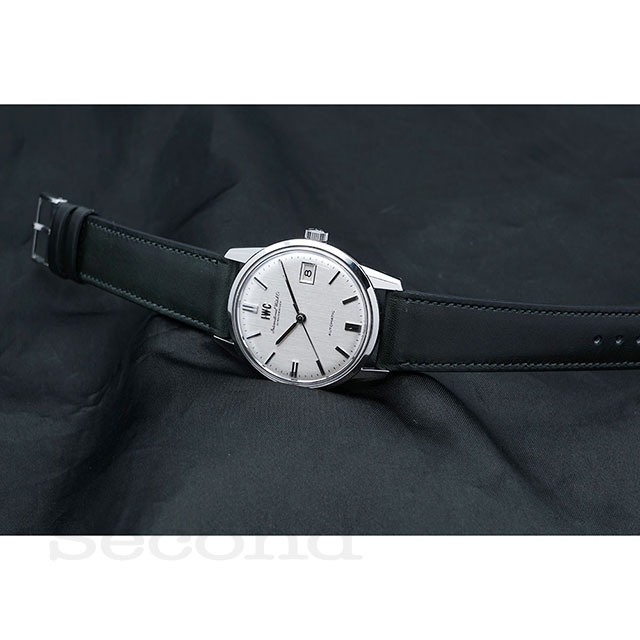 シャープなニードルポイントに立体的なバーインデックス、IWCのアップライトロゴも品のあるディテールです。