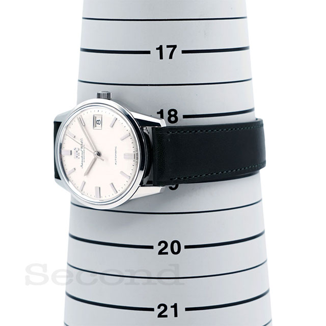 癖のないシンプルなステンレスケースにシルバーダイヤルの外観がクラシカルな自動巻腕時計。