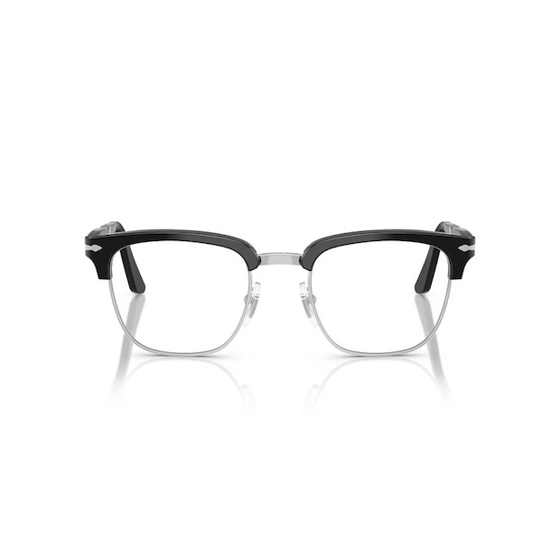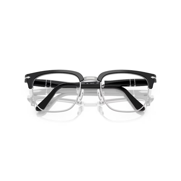 Persol ペルソール 3375V Col.95 黒×シルバー 折りたたみ式 ウェリントンタイプ サーモントブロー メガネ 正規輸入品
