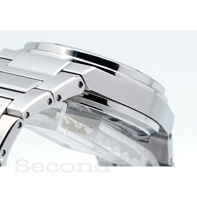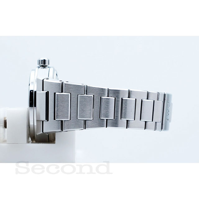 重厚なステンレスケースに一体型のブレスが特徴的で、力強いデザインとなっております。