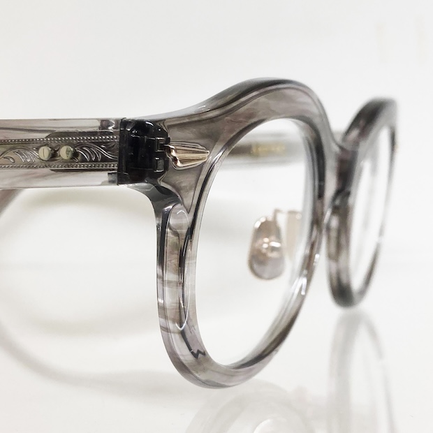 また、最初期のGROOVERで取り入れられていたオーセンティックなブリッジラインが、このAZTECのラウンドフォルムをより際立たせています。このブリッジは単なる機能的な要素にとどまらず、全体のバランスや美しさを引き立て、見る人に強い印象を残します。デザイナーの緻密な計算と遊び心が感じられ、古代遺跡の幾何学的なモチーフや歴史的文様にもどこか通じる雰囲気をまとっています。