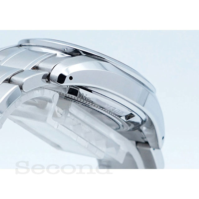 多面カットされたドルフィンハンドと立体的なバーインデックス、アプライトロゴも洗練されたディテールです。