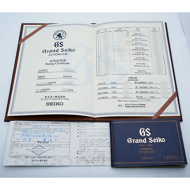 付属品 内・外箱,保証書(1999.10.正),取扱説明書,革ベルト(未使用 茶),コマ×3