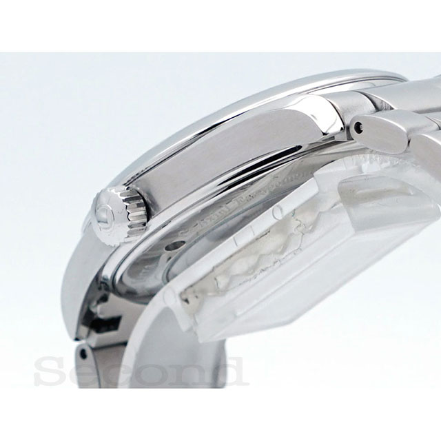 程よくエッジの効いたステンレスケースにサンレイ仕上げのシルバーダイヤルが爽やかな印象の自動巻腕時計。