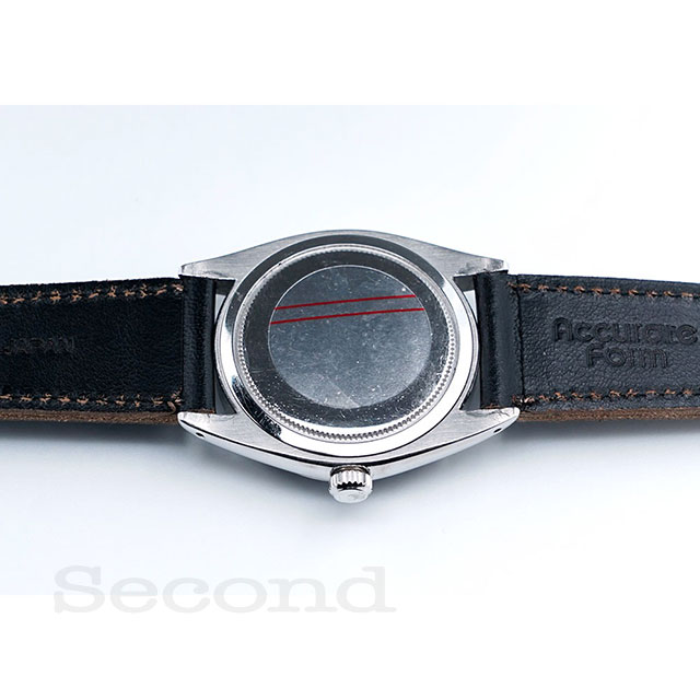 ケース径は約34.5mmと控えめで、腕元にスッキリと納まるサイズとなっております。