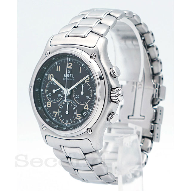 ブラックで統一された文字盤にはアラビアインデックスを採用しており、バランスの良い外観に。