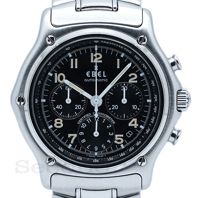 六角形のケースにビスデザインを配したクロノグラフ式自動巻腕時計。