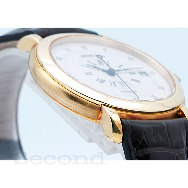 横長楕円型のイエローゴールドのオーバルケースが特徴的な自動巻腕時計。