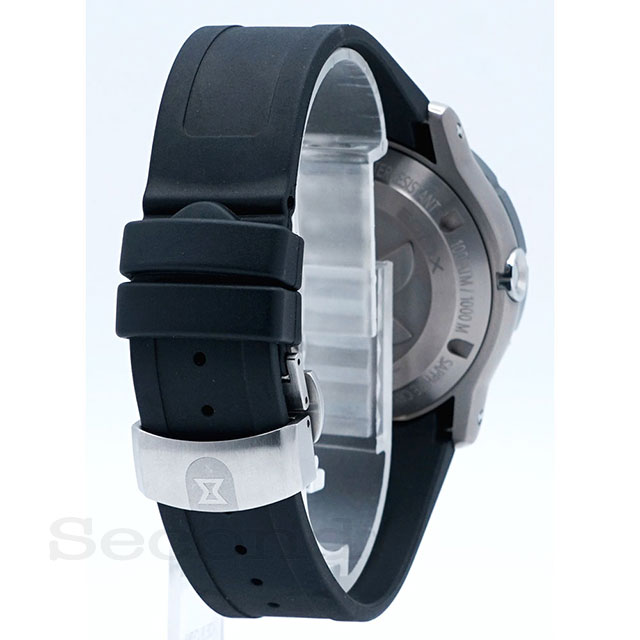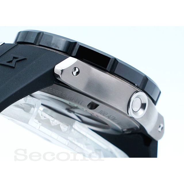 ブラックのセラミックベゼルを備えた重厚なケースと同色のブラックダイヤルが力強い外観のクォーツ腕時計。