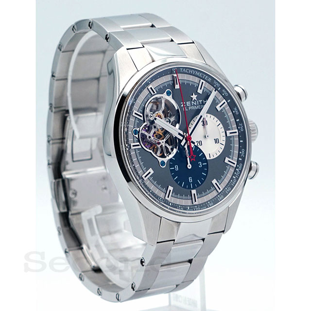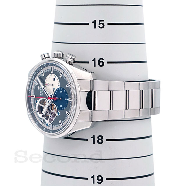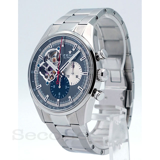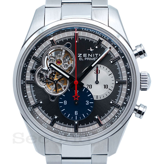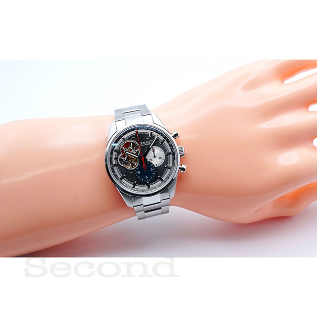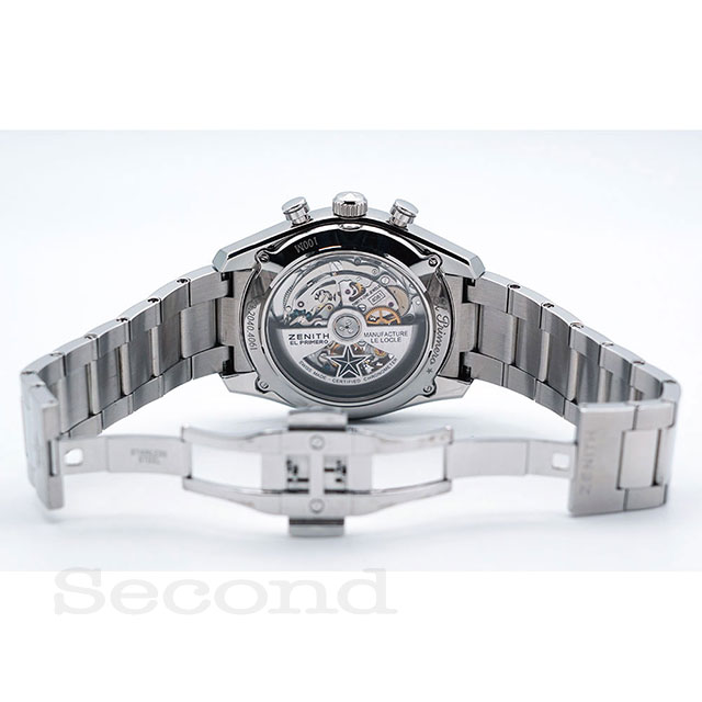 名機「エル・プリメロ」を搭載した、ゼニスを代表する高振動クロノグラフ式自動巻腕時計。