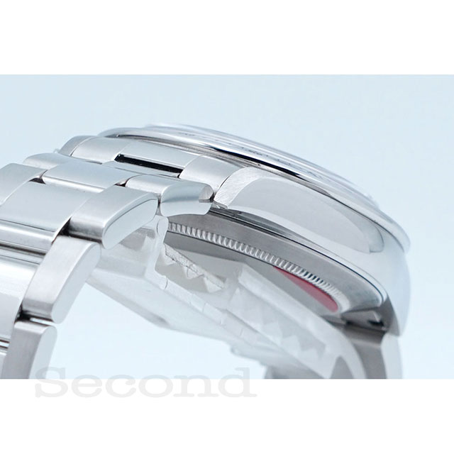 反転カラーを使用することで視認性を確保し、3列のオイスターブレスは中央のコマのみ鏡面仕上げにすることでラグジュアリーな雰囲気もプラスされ、スポーツモデルの王者たる風格が漂います。