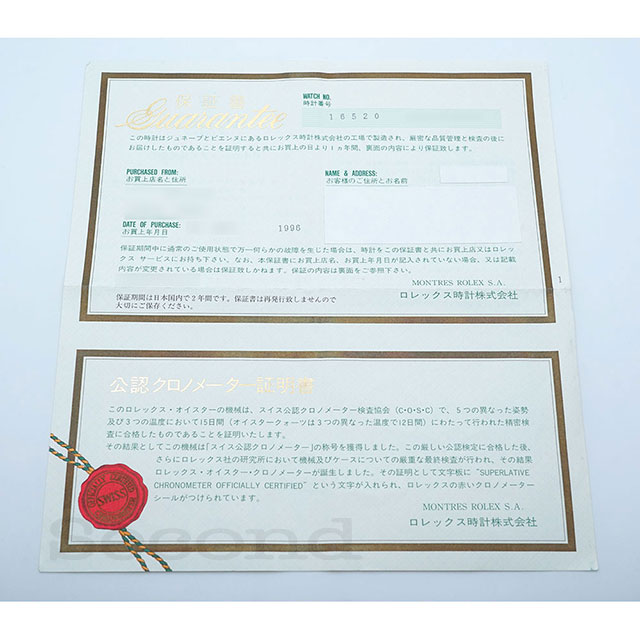 付属品 内外箱、保証書(1996.7.正)、日ロレサービス保証書(2014.8)、レッドシール、メーカー修理明細書OH(2014.7)