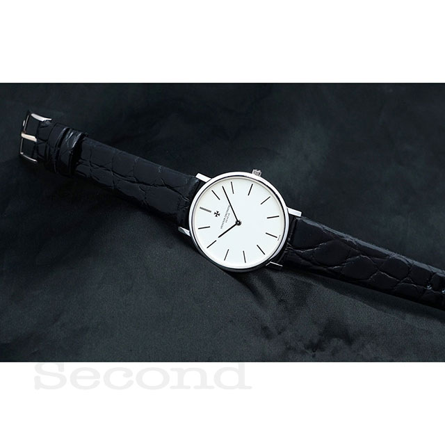 細身の二針、バーインデックスはミニマルな外観でドレスウォッチたる格式の高さを感じます。