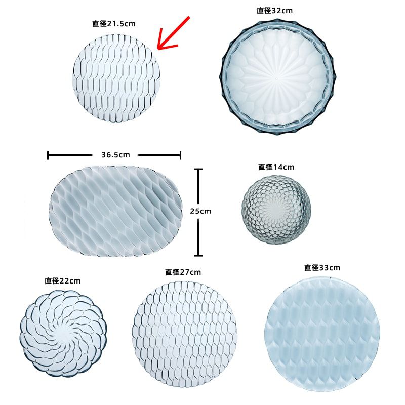 クリスタルガラスやダイヤモンドは、カッティングによって輝きや印象が変わります。このジェリーズも、表面のテクスチャ―デザインへのあくなき研究によって、今までのプラスチック製の食器では考えられなかった、驚きの美しさを実現させました。
