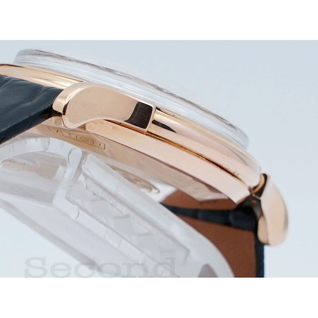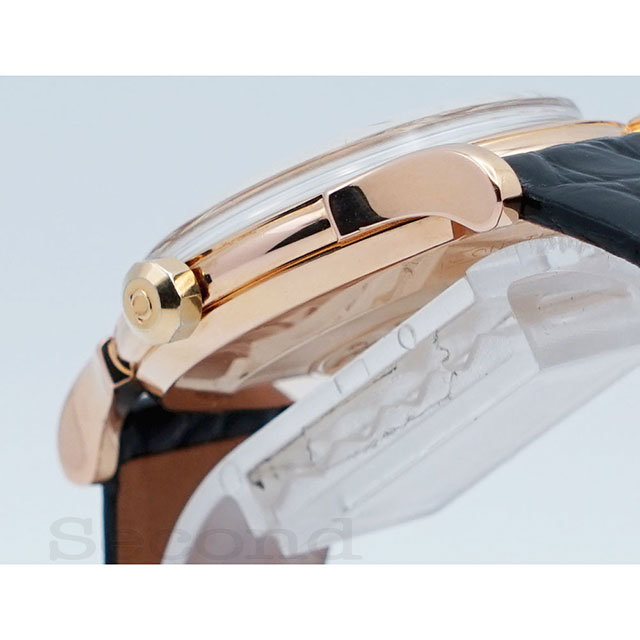 ピンクゴールドケースにアイボリーダイヤルの組み合わせがドレッシーな自動巻腕時計。